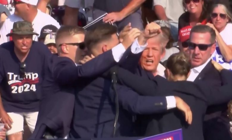 وأظهرت لقطات مصورة أفرادا من جهاز الخدمة السرية والشرطة يرافقون ترامب إلى سيارة بينما كان يرفع قبضته في الهواء.